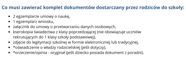 Proces rekrutacyjny rozpoczyna się po dostarczeniu do szkoły poniższych dokumentów.